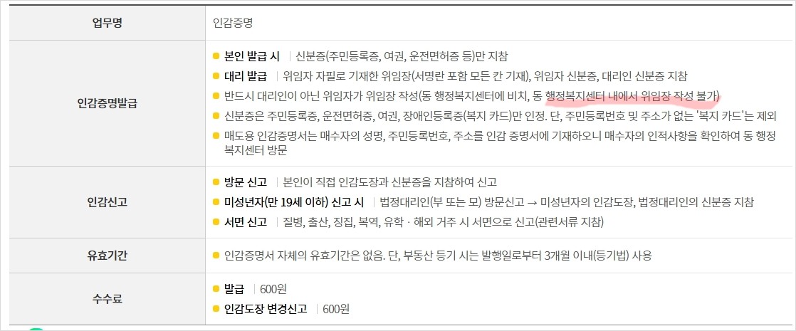 | 위임장 (인감도장 날인) | 필수 |